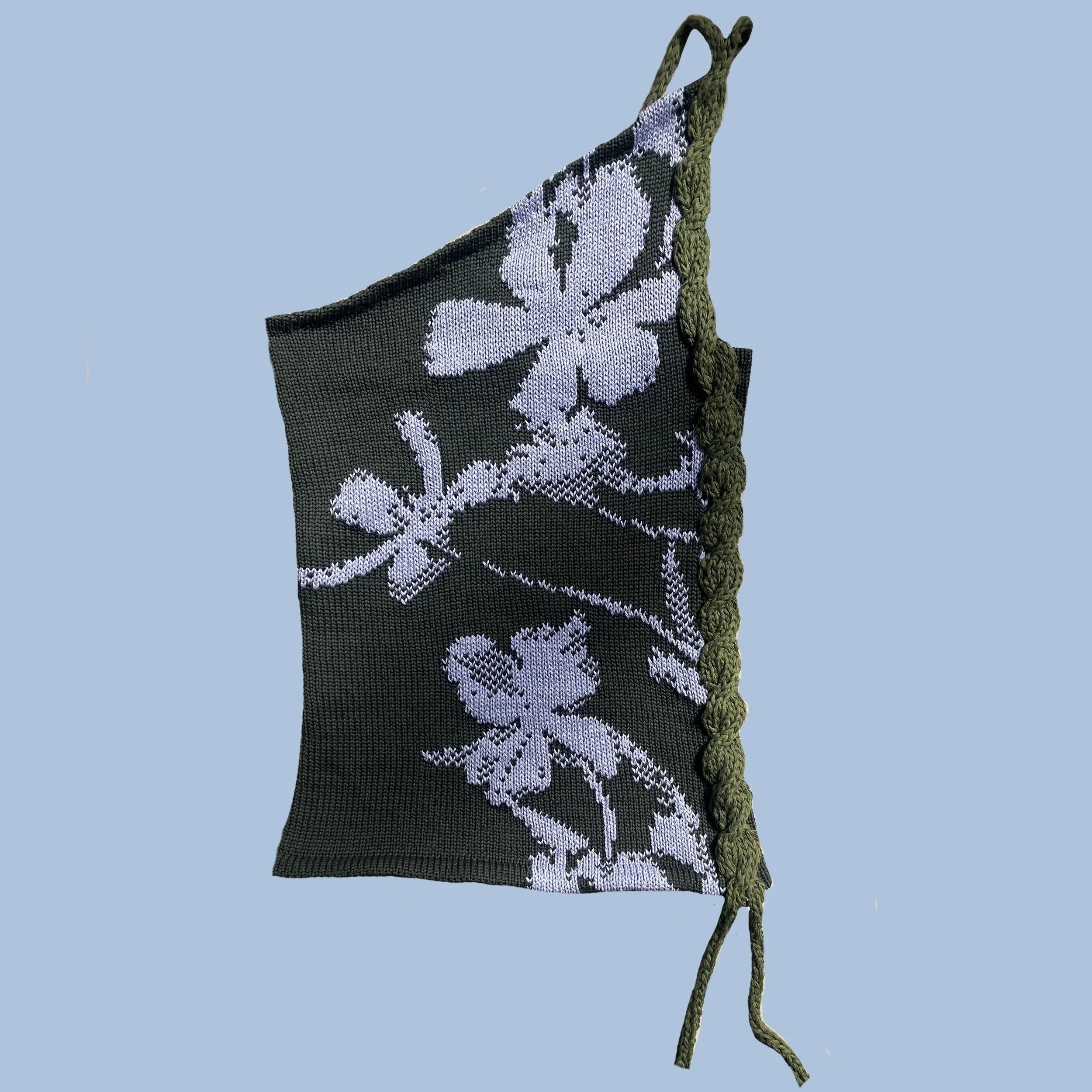 Floral graphic knit in violet/khaki