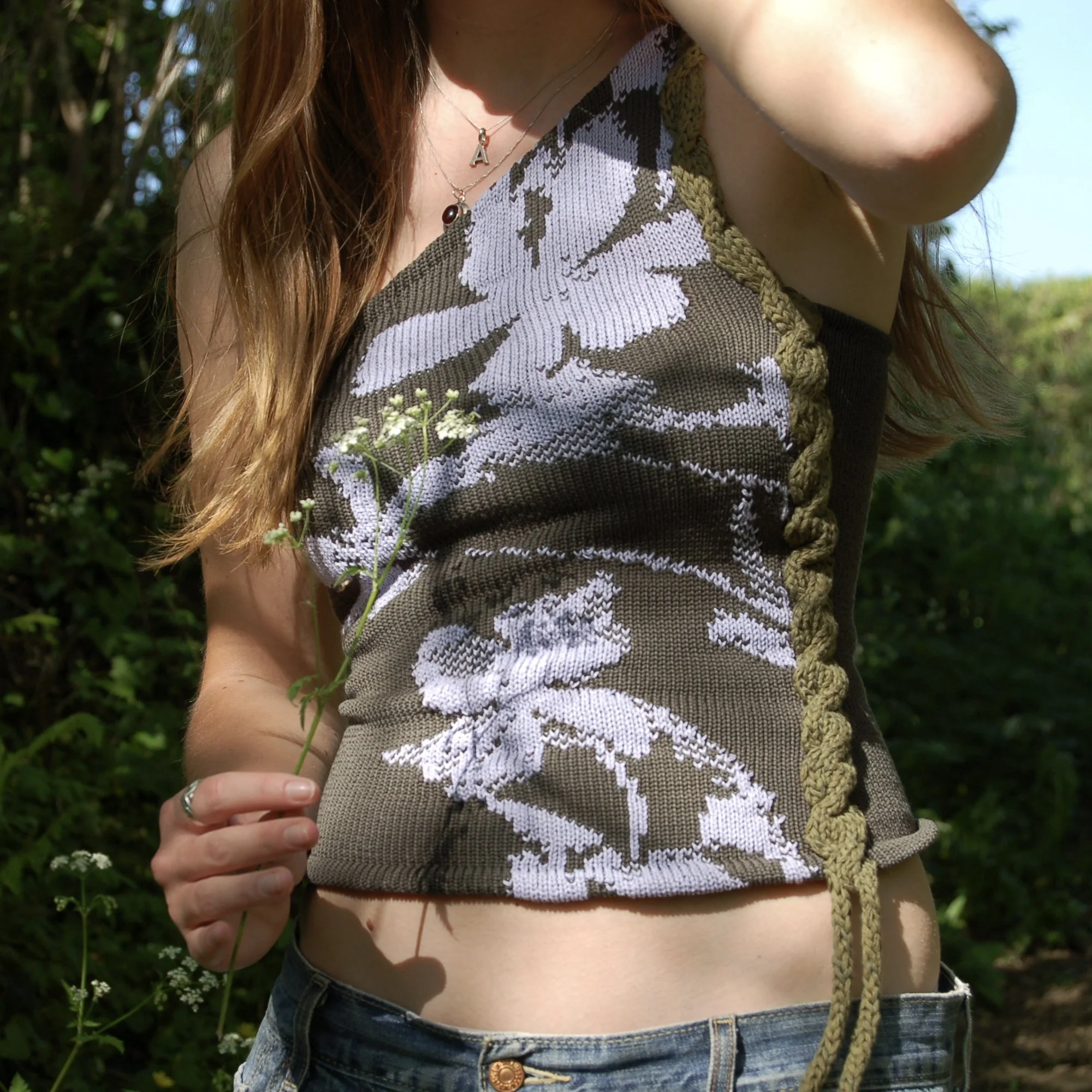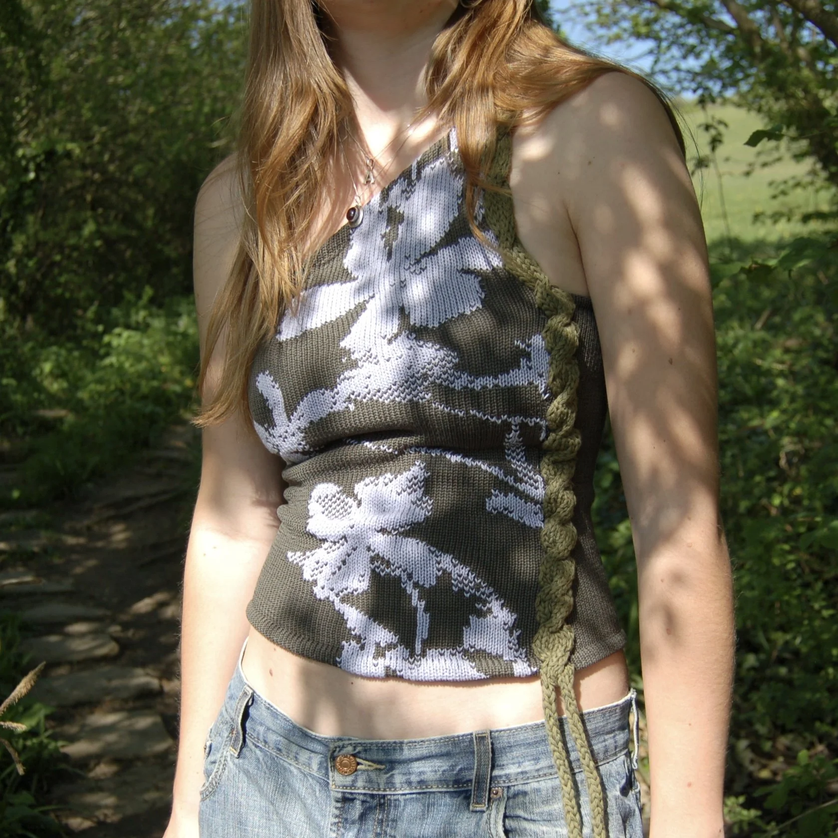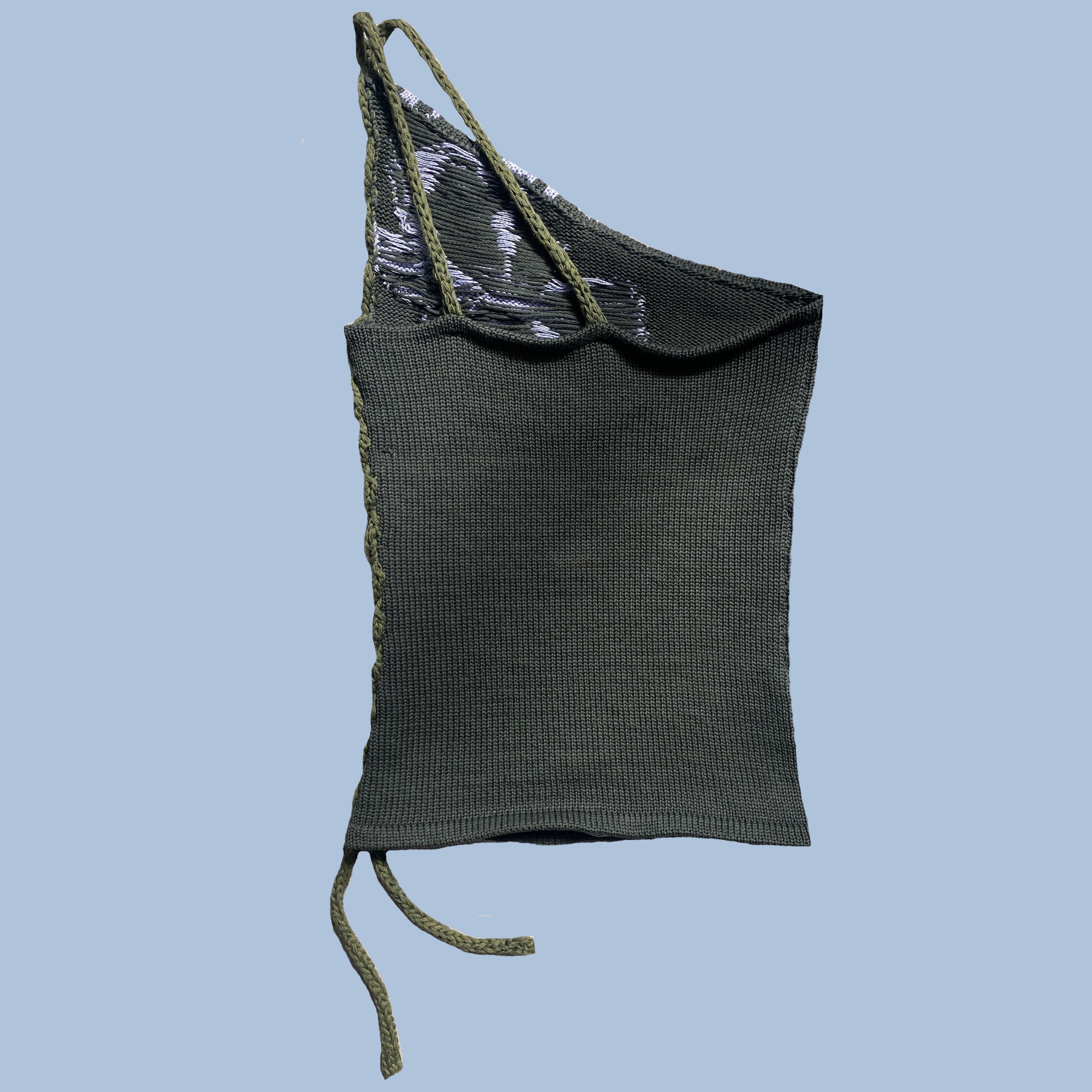 One shoulder asymmetrical knit tank top with twist cable detail and straps